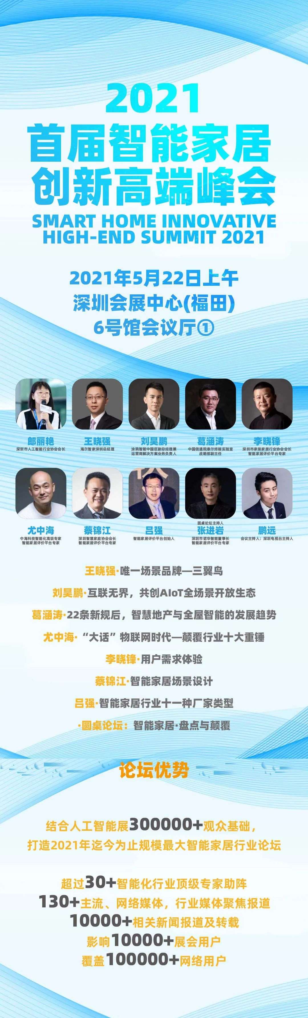 2021智能家居创新高端峰会是由主办单位深圳市人工智能行业协会联合智能家居评价平台、深圳市建筑电气与智能化协会、智能家居联盟共同举办的,探讨智能家居服务体验升级,后疫情时代所带来的市场变化,智能化场景应用趋势,智能家居市场的应用与推广等的高端峰会。峰会以专家报告会议形式,探讨未来智能家居的发展趋势。会议将邀请珠海三角地区的房地产开发商、设计院、集成商、智能家居厂家、高校参会。