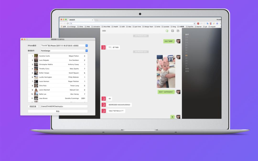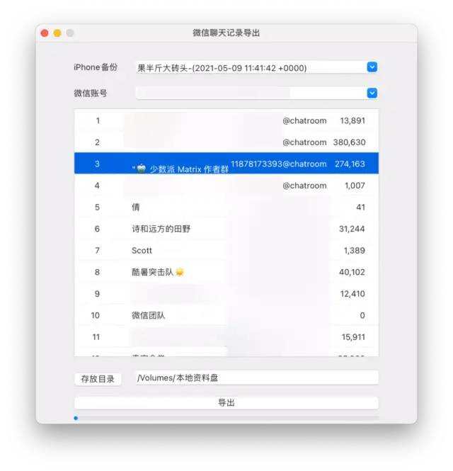 WX Backup可以说是不可多得的良心软件,只需将苹果设备以有线的方式连接到电脑,并进行未加密的系统备份,然后打开WX Backup便可以自动获取微信聊天记录。