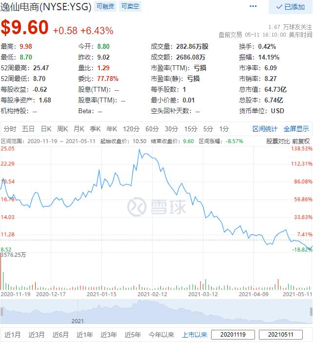 三个月后的今天,逸仙电商股价几乎跌回发行价,截至5月12日收盘报9.6美元/股,市值较最高点蒸发超过100亿美元。