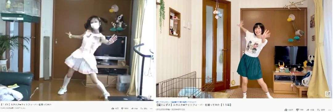日本那边从未形成过“宅舞”这个概念,倒是没有类似的包袱。但随着板块整体水平不断提升,编舞越来越复杂多变,表演者们的妆容服饰和摄影后期也水涨船高越发精致,早就不是当初那样戴着口罩在自家阳台对着电脑摄像头“试着跳一下”而已。