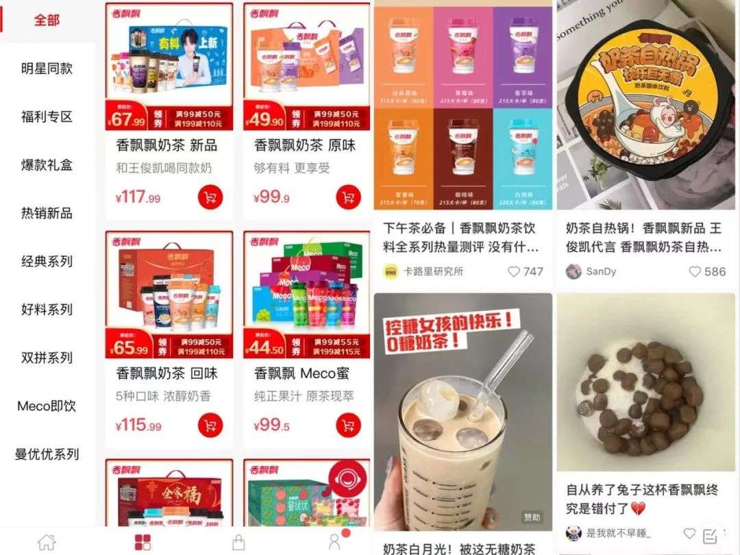 当然,香飘飘的终端渠道主要是零售店货架,与喜茶、奈雪等新式茶饮的门店终端不能直接对比,但其触达粉丝用户的粘性,会有明显不同,后者更有互动感。