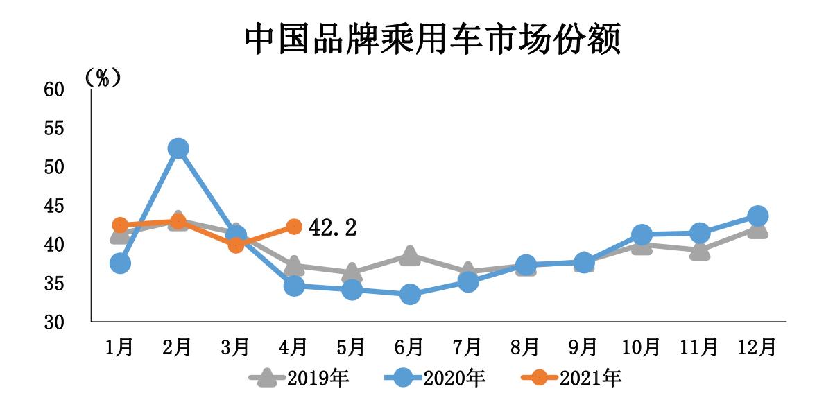 中国品牌乘用车市场份额(图片来源:中汽协)