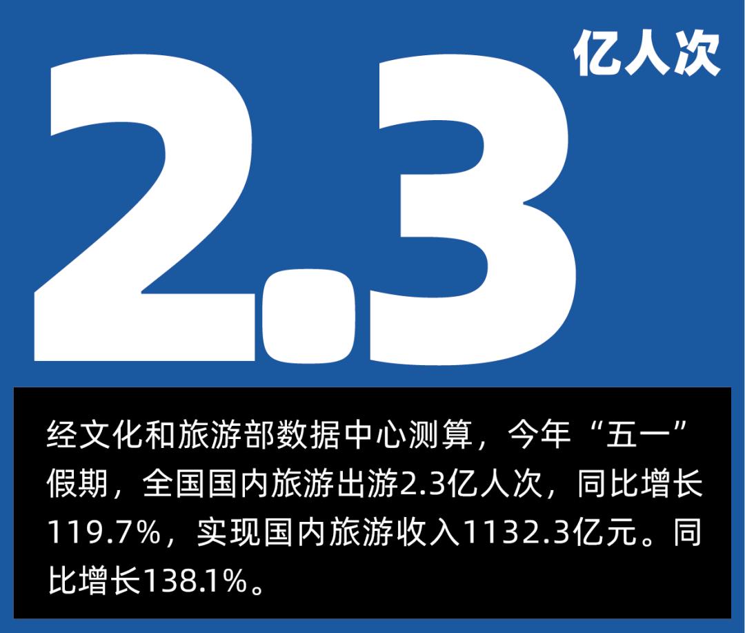 根据央视新闻发布的数据来看,今年五一假期,全国国内旅游出游共2.3亿人次,同比增长119.7%;国内旅游收入1132.3亿元,同比增长138.1%。
