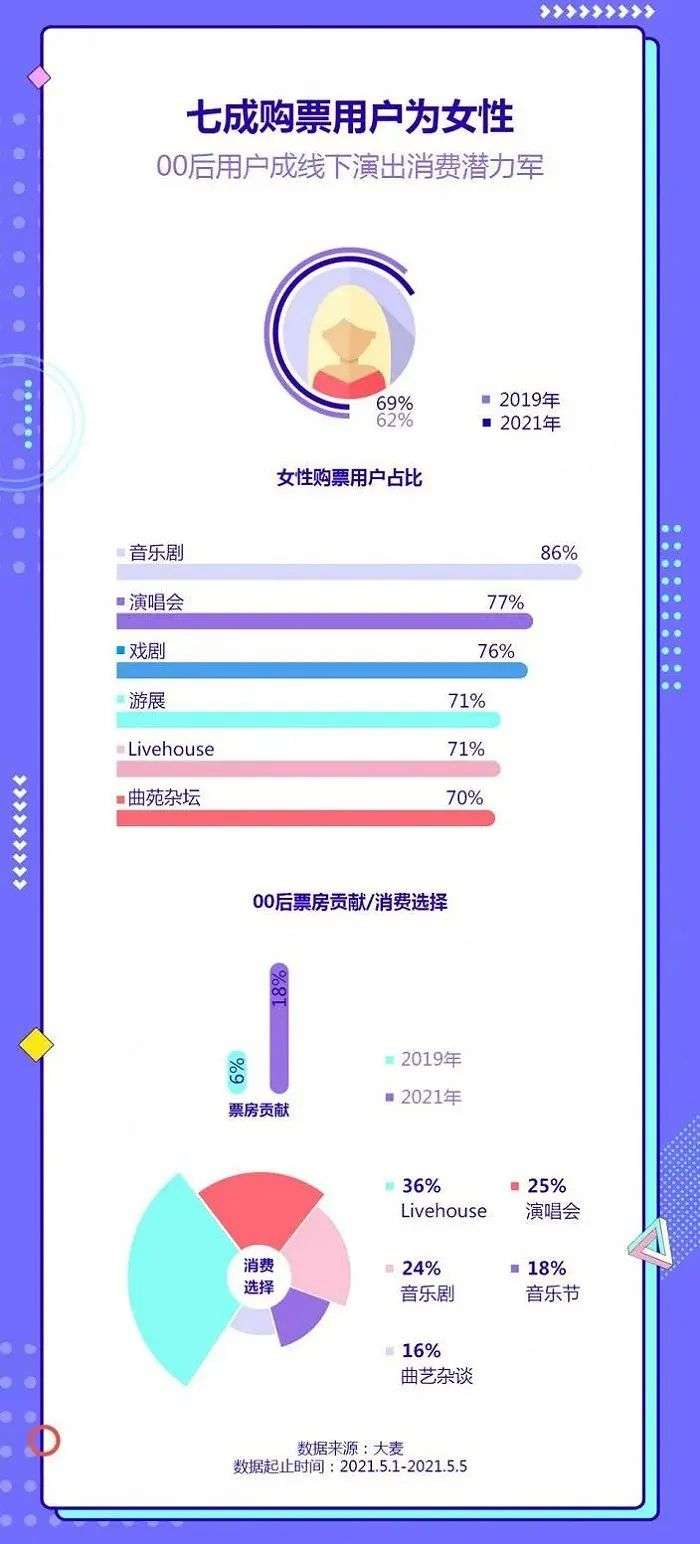 除此之外,据《2021五一档演出观察》显示,00后逐渐成长为演出消费的潜力军。