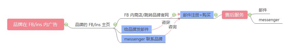 上图是用户通过 Facebook 和 ins 从公域进入品牌私域的路径,蓝色色块是品牌与用户建立直接联系的节点。