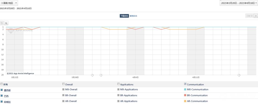 从 App Annie 社交类热门排行榜来看,拉美和欧洲地区用户日常更喜欢使用 WhatsApp,但在美国,用户则更喜欢用 Messenger。