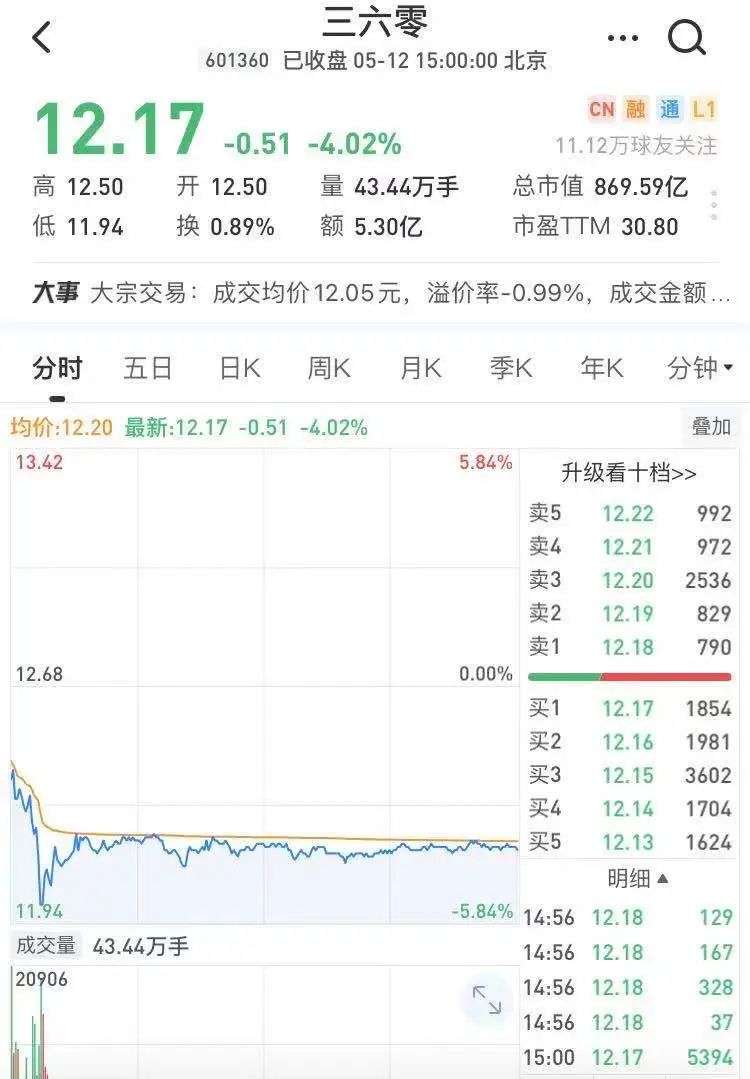 值得一提的是,在宣布正式下场造车后,360的股价却并未得到提振,截至5月12日收盘,360股价报收12.17元,总市值869.59亿元。
