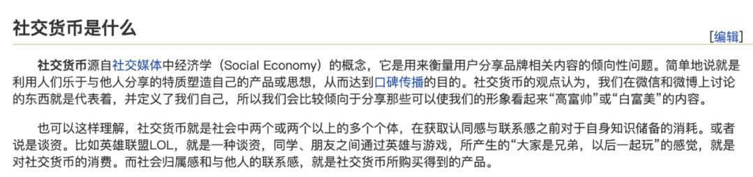 《疯传》的作者沃顿商学院教授也Jonah Berger是这样对社交货币的描述是这样的:“社交货币,就像人们使用货币能买到商品或服务一样,使用社交货币能够获得家人、朋友和同事的更多好评和更积极的印象。”说的更直白点,就是一个人在社交场合的出场价值,凡是能买到别人的关注、评论、赞的行为都可以称之为社交货币。