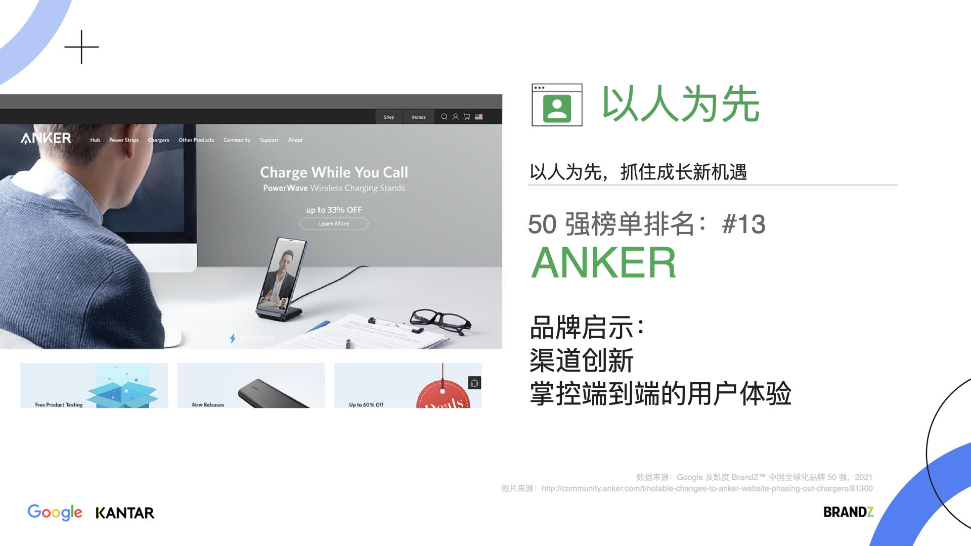 Anker 品牌启示(图片来源:谷歌 x 凯度《 2021 年凯度 BrandZ™ 中国全球化品牌 50 强》)