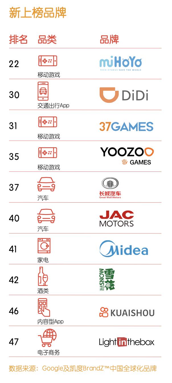 2021 新晋上榜品牌(图片来源:谷歌 x 凯度《 2021 年凯度 BrandZ™ 中国全球化品牌 50 强》)