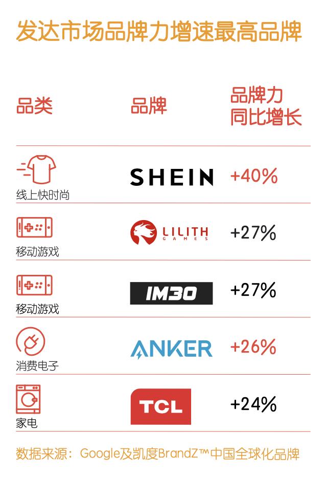 发达市场品牌力增速最高品牌(图片来源:谷歌 x 凯度《 2021 年凯度 BrandZ™ 中国全球化品牌 50 强》)