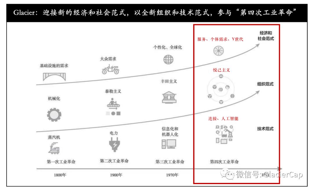 Glacier观察,历次工业革命都经历三个步骤:第一步重新定义产品,第二步重新定义产业链上、中、下游和它们的协作模式,第三步开放能力给其他工业门类。