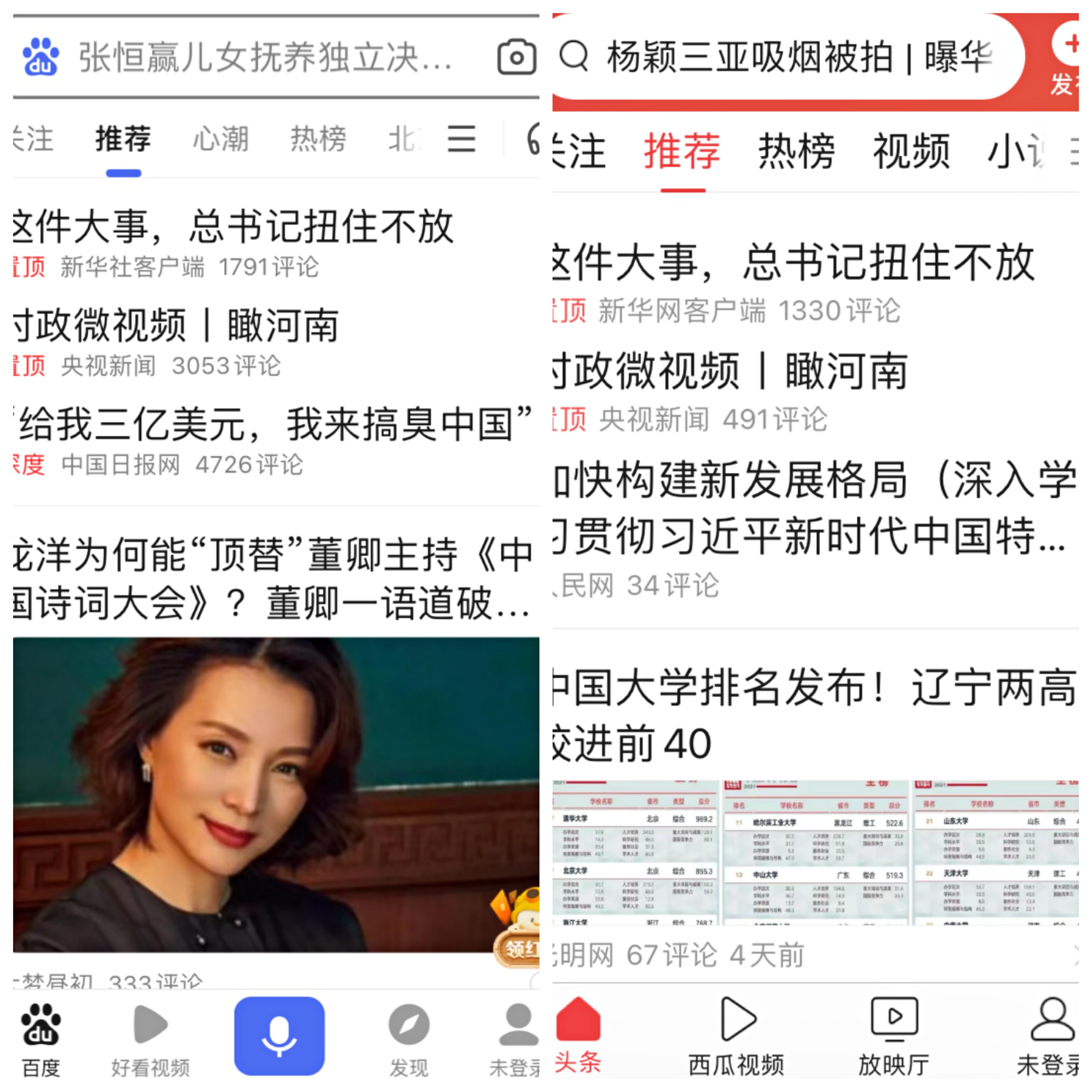 把今日头条和百度的移动端App放在一起做一个对比,你会发现这两款产品已经相差无几。