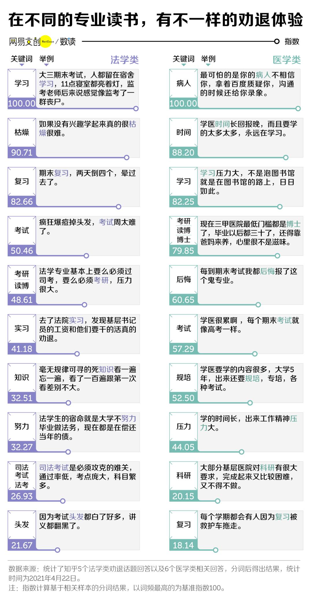 “劝人学医,天打雷劈”“劝人学法,千刀万剐”,这是劝退江湖上流行已久的传言,这两句劝退格言也总是被医学生和法学生用来劝告前来咨询的高三学子。