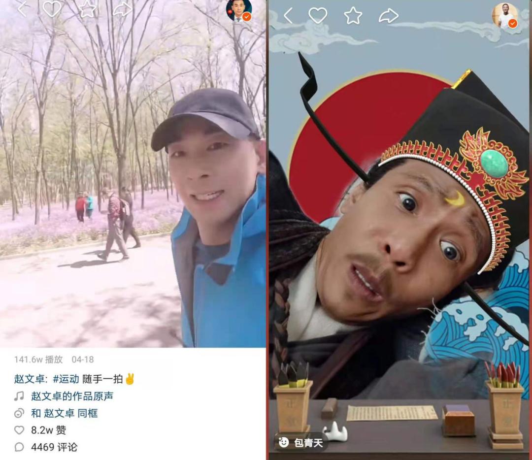 喜剧人特色鲜明的宋小宝玩起了“不用化妆都能演”的包青天特效,赵文卓在朝阳公园跑步随手拍,郑恺则把生日会直播交给快手平台,连麦一众老铁粉丝畅聊火锅与减肥,仿佛唠家常。