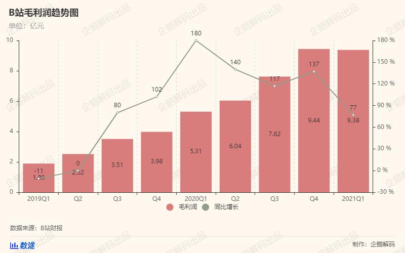 也正得益于此,B站毛利润稳步提升,已经连续两季度突破9亿元,预计今年有望首次突破10亿元大关。