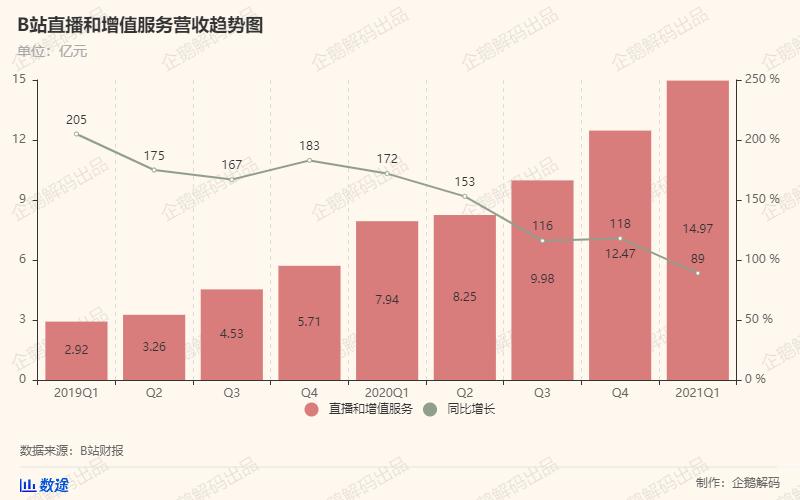 去年8月1日,B站斥资8亿元,正式获得中国大陆地区2020-2022连续三年的全球赛事独家直播版权,这在当时已是天价。今年4月15日,B站又宣布成功拿下《守望先锋联赛》2021赛季中国大陆地区独家直播及点播媒体版权。接二连三的直播版权采买,或许将进一步提振B站直播和增值服务的飞速增长。