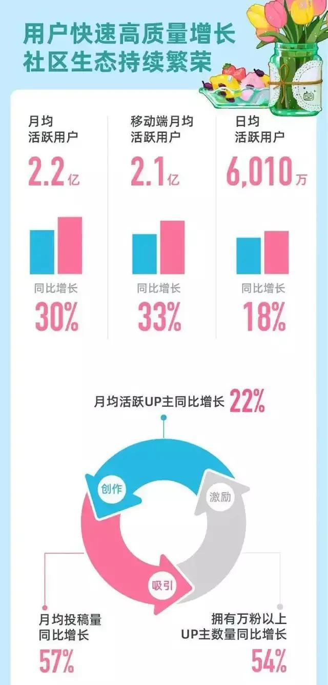 事实上,在去年突然被拉高的月活用户数据基础之上,B站依然实现了同比30%的增长,成绩已属不错。这就像女生减肥,上半年因为某个契机突然瘦了20斤,下半年能继续瘦6斤,就很不容易了。