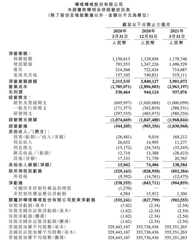 北京时间5月13日,B站公布了截至2021年3月31日的第一季度未经审计的财务报告,这也是它登陆港交所之后发布的第一份财报。数据显示,B站一季度营收为39.0亿元人民币,同比增长68%,高于市场预期。