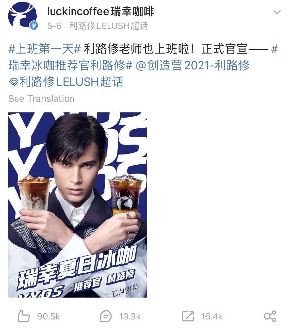 这是瑞幸官宣利路修成为“品牌冰咖推荐官”后,发布的首支广告片《瑞幸YYDS》。