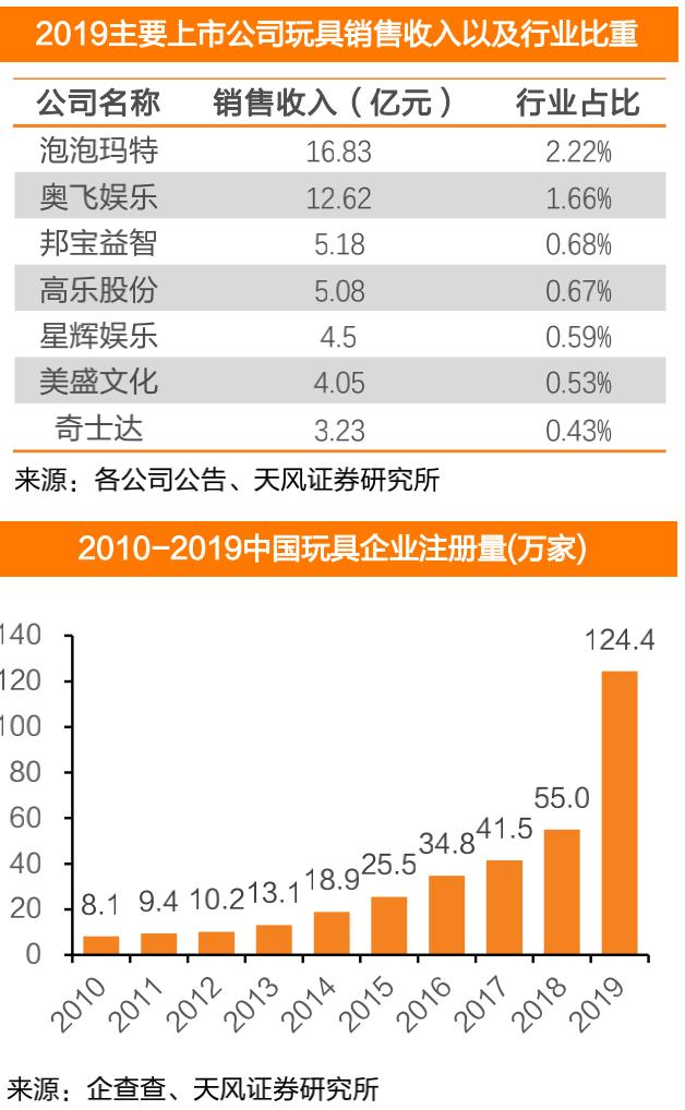 企查查数据显示,我国目前共有在业存续的玩具相关企业339万家。从10年企业注册量8.1万家到19年的124.4万家,增长了15倍,较18年同比增长126%。2018年我国玩具类注册企业还只有55万家,到2019年猛增至124万多家。可见大家对这块市场的重视。