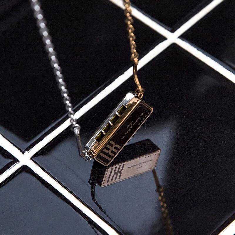 DONHA 从鲍勃迪伦的经典演出造型中汲取灵感,融合对于解构主义的理解,设计了这样一个「热爱潮流人士」及「艺术文化爱好者」都会看多两眼的四口口风琴项链。