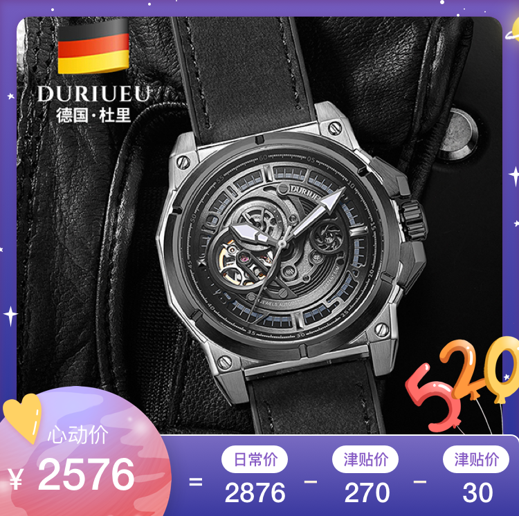 德国进口 DURIUEU 杜里全自动镂空机械表