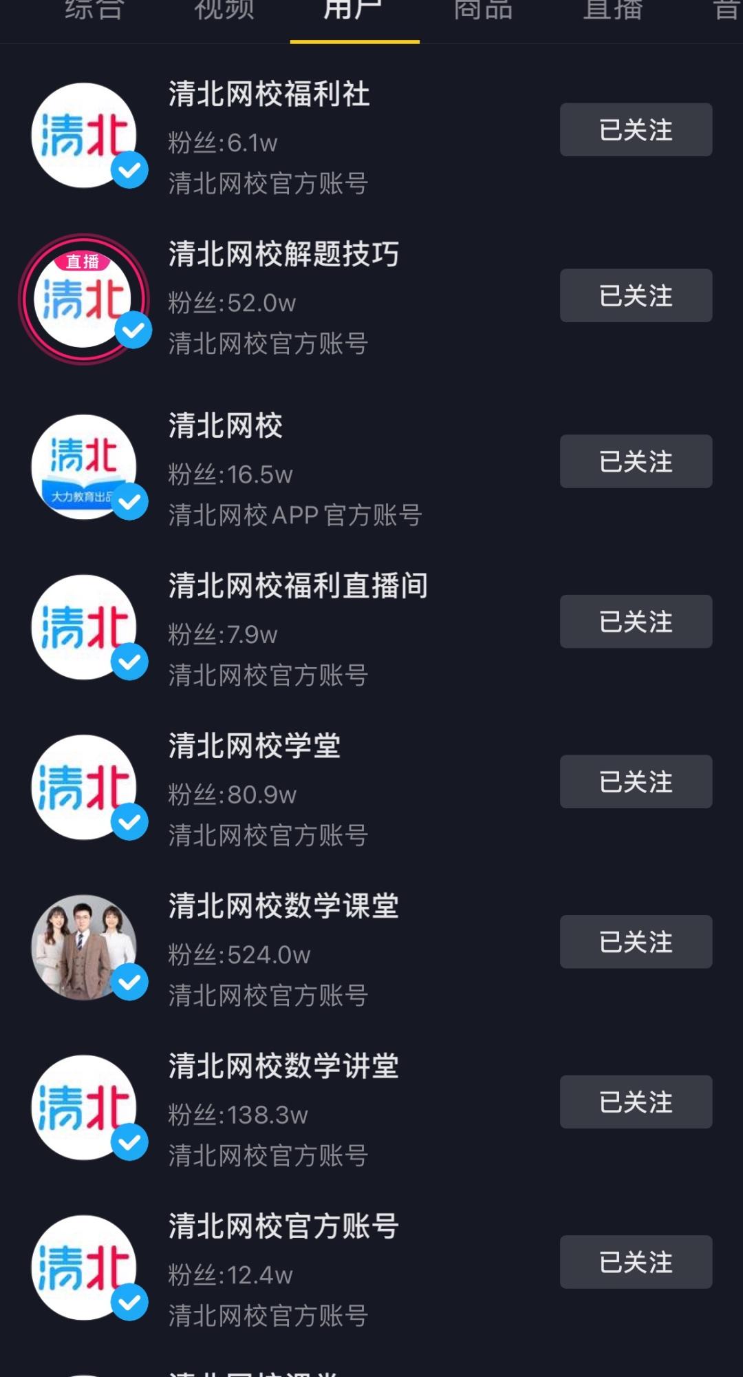 清北网校也有清北网校数学课堂、清北网校福利社、清北网校学堂、清北网校福利直播间、清北网校数学讲堂、清北网校官方账号、清北网校解题技巧等多个企业号。