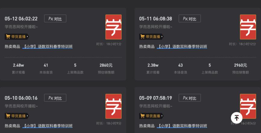 从直播间人气来看,这种实物礼物尤其是定时秒杀学习用品的形式确实刺激了家长用户对直播间的关注,不少家长为了参与定时秒杀,往往会蹲守直播间。而在其蹲守直播间的这一长时间里,或也将不可避免被课程“种草”。