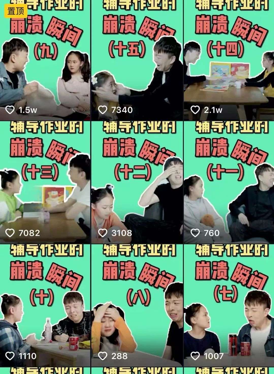 如“作业帮直播课帮帮日记”的视频内容聚焦在一对父母辅导作业的日常崩溃瞬间,剧情既贴近现实生活、情景设计也诙谐有趣,目前视频点赞率基本维持在数千,最高一条视频点赞量在1.5万左右,整个企业号粉丝数量在2.1万左右。