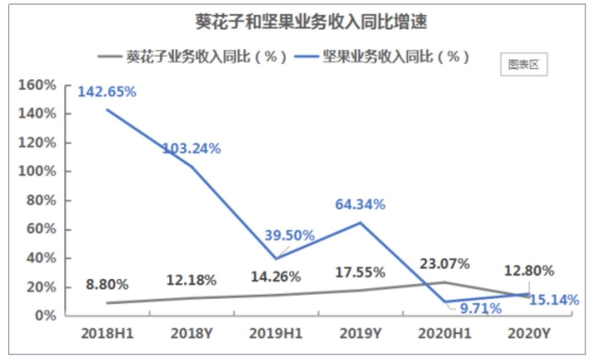 根据公开数据,近年来我国食用葵花籽产量稳定在90万吨左右,产量增速有限,葵花籽消费接近饱和,洽洽食品在瓜子销售提升受到阻碍。