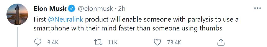 对此,马斯克单独发推文说,实际上他预计Neuralink产品的初始版本将使瘫痪患者使用智能手机的速度比使用手指的用户更快。