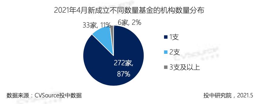 4月98%的VC/PE机构新成立基金数量为1-2支,仅6家机构新设基金在3支及以上。