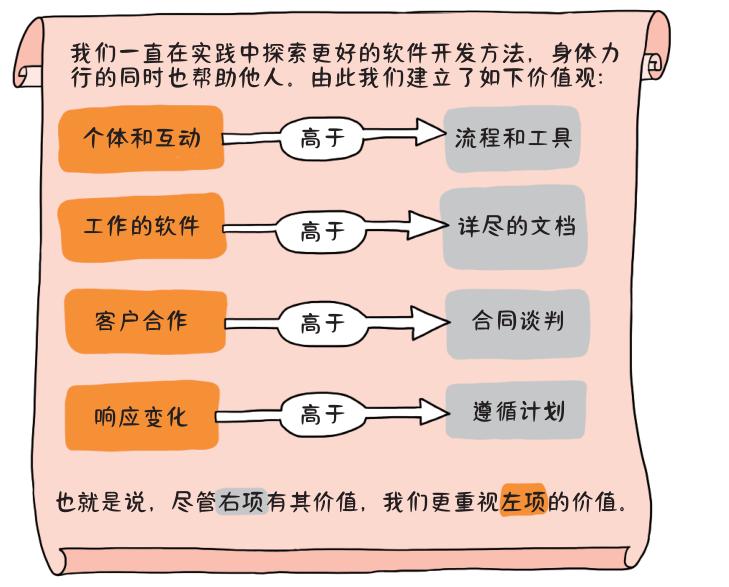 《敏捷宣言》不会指导如何做――使用哪种实践,以什么顺序进行,而是将Scrum和极限编程等各种方法统一归在一项名目之下,统称为敏捷方法。最初,这些方法只是被悄悄传播,随后,范围逐渐扩大。