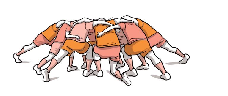 英语的Scrum与橄榄球运动有关。十年前,一群日本学者在探索复杂创新产品的最佳开发方式时,证明了团队协作的有效性。团队中的所有人都朝着同一方向前进,就像橄榄球运动中并列争球的场景。Scrum的创始人借用此类比来突出集体努力这一中心思想。