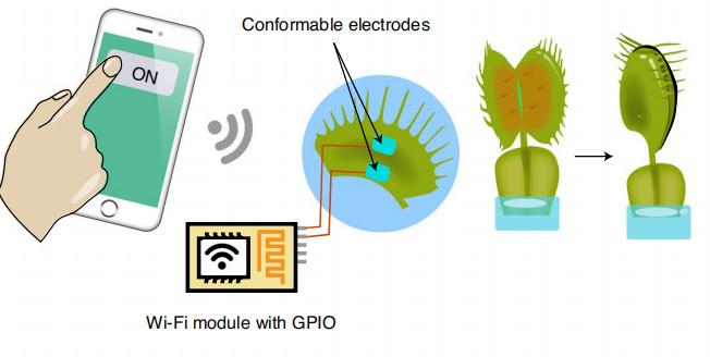 电极的直径仅为3毫米,对植物无害,不影响植物进行光合作用的能力。有了附着在捕蝇草表面的电极,研究人员可以拾取电信号以监控植物对环境的反应,并将电信号传输到植物,使其关闭叶子。