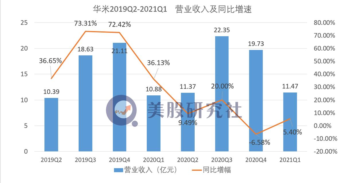 作为国内可穿戴设备龙头的华米科技是小米生态链中的一员,来自小米的收入也一直占据了营收的大半壁江山。2021年5月13日华米科技发布的财报数据显示,本季度本季度营收达11亿元,同比增长5.4%,第一季度总出货量为630部。