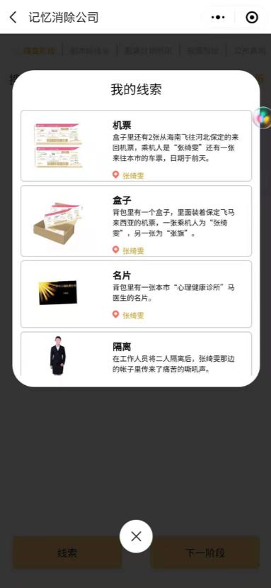 搜索会获得线索,线索可以随时点击查看,到目前为止流程与线下版本都没有太大区别,但是对于新手来说,就需要由玩过的人介绍具体的玩法、注意事项等,而在线下店中这些都是由DM完成的。