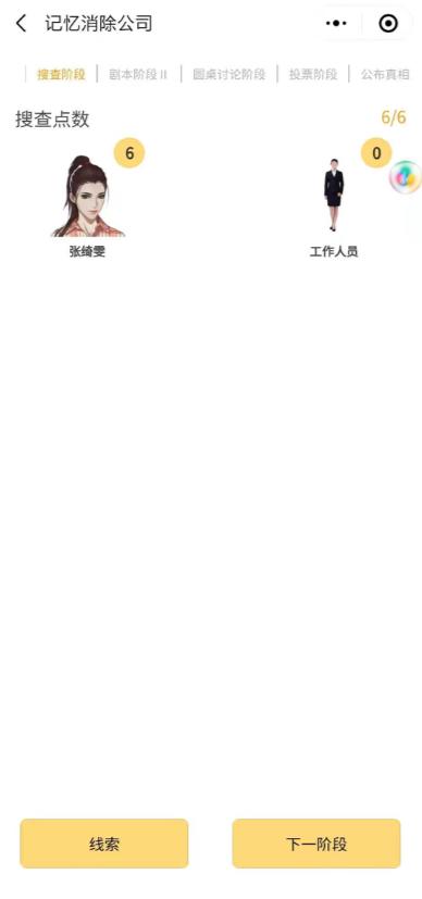 下一部就是搜查阶段,每个角色所得到的搜查点数基本一致,但是能够搜查的人员和对应的次数会有所不同,比如小雷扮演的“张旗”就只能够搜查“张绮雯”而无法搜查“工作人员”,同事扮演的“张绮雯”则有所不同。