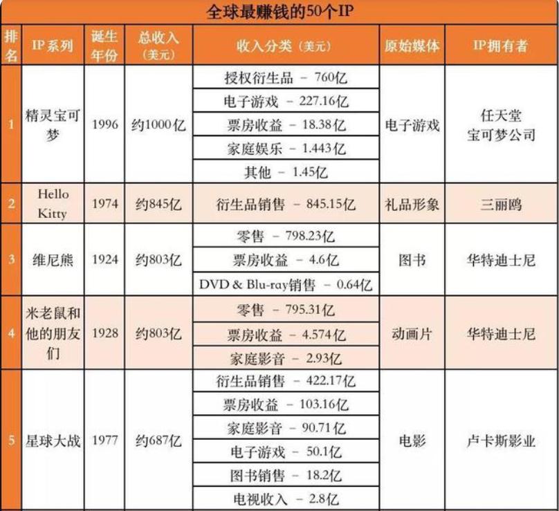 游戏氪金和影视改编也同样赚钱,现代电子游戏产业的开创者任天堂,光是精灵宝可梦,累计营收就高达六兆日元,折合人民币约4000亿的数字,可谓是整个游戏界最赚钱的IP,没有之一。