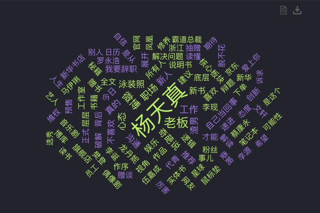 关于杨天真,和她更紧密的关键词是“老板、职场、工作、心态”等,这和她个人的经历十分贴近,作为经纪人、老板出身的她,在大众认知中更多是“幕后操盘手” 的形象,包括在各大综艺节目中,“老板”的形象深入人心,也由于这个身份获得了越来越多的网友们关注,当然,也包括她走向台前,开始对自己做的一系列营销,比如“泳装照”。