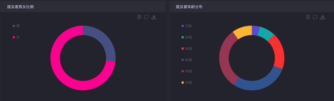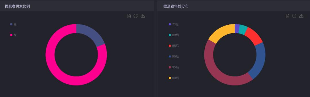 根据时趣洞察引擎来看,关注杨天真的以女性为主,从年龄来看,90后更具人气,85后和95后不相上下。