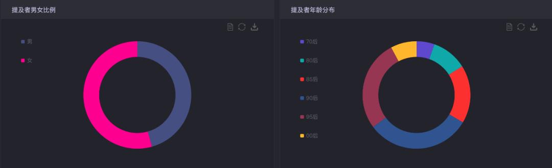 从性别比例来看,主要以女性粉丝为主,用户年龄也多集中在95后和90后。同时,尹正的情感值为16,处于安全区间,并且具备一定周期内的连续热度,说明尹正和网友们之间的日常互动和联系比较高频,记忆点多。