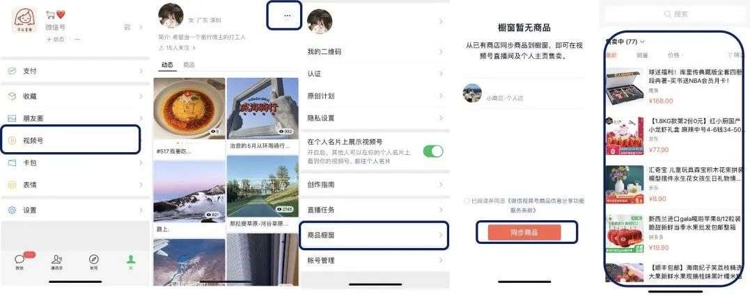 需要先在微信-我-视频号-设置-商品橱窗,进行商品同步操作,操作如下: