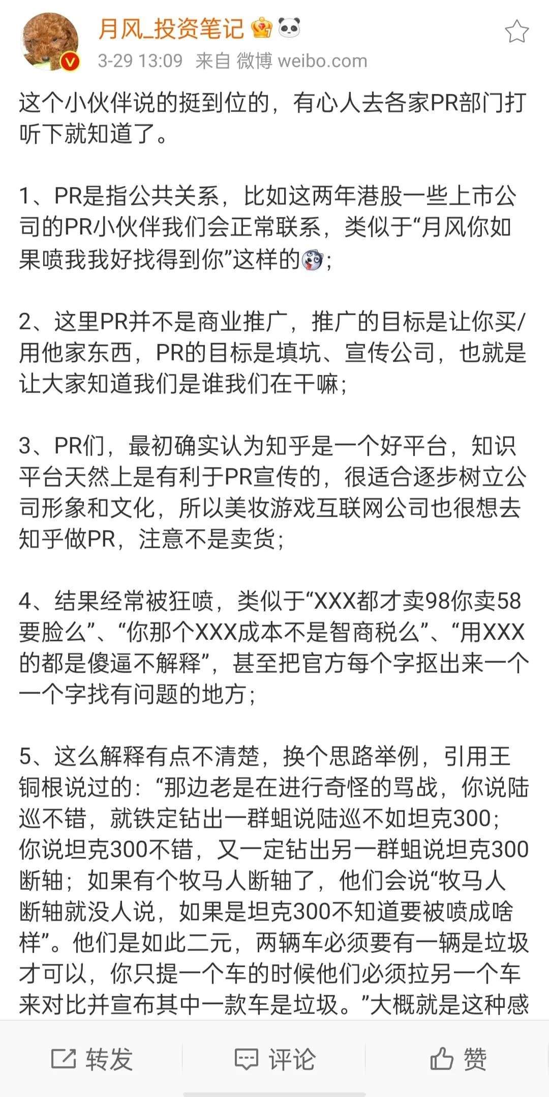 沣京资本基金经理吴悦风曾发微博阐释这个过程:大品牌PR被气走之后,由此剩下的往往是含有广告植入的劣质营销软文。