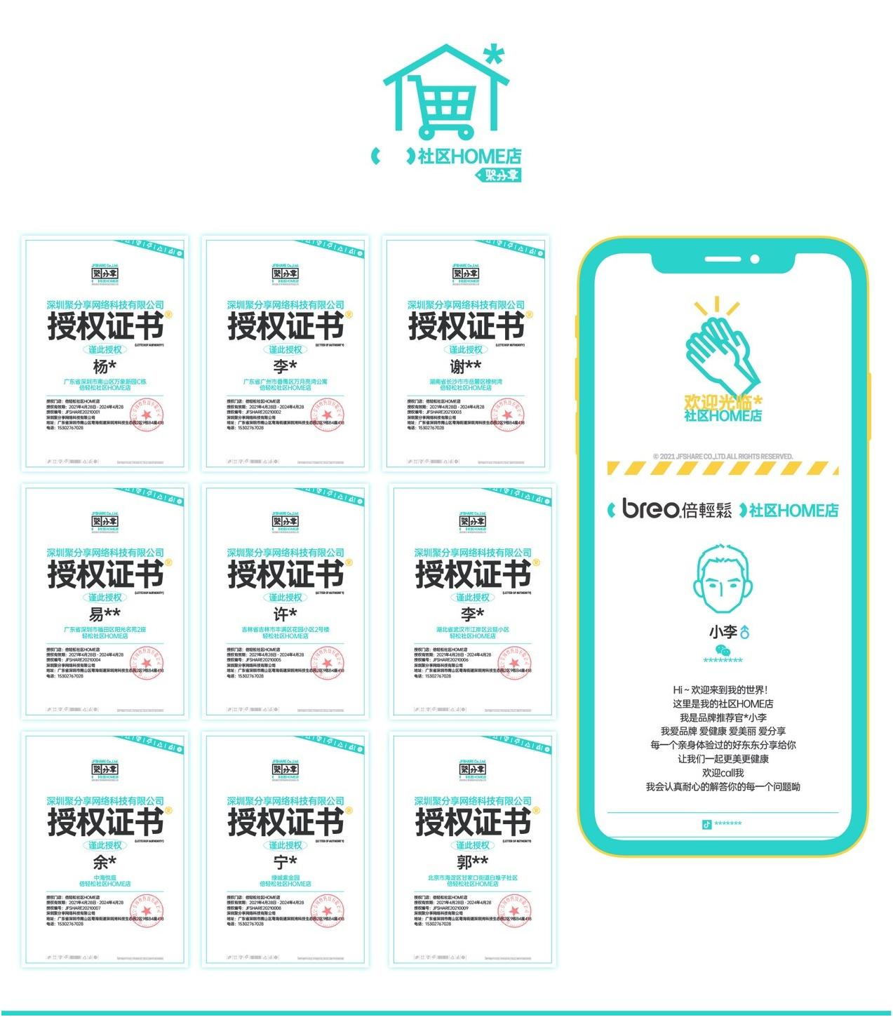 聚分享将会积极引入品牌方,助力品牌方招募KOC社区长 (品牌推荐官),“一个KOC(品牌推荐官)”相当于是“一家门店”,“100个KOC”就是“100家门店”,“1000个KOC”就是“1000家门店”,同时为每一个门店颁发相应的授权证书。