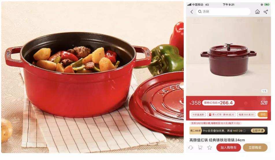2016年成立时,在商品上标注“大牌同厂”的网易严选,看起来既有吸引力又富争议性。它宣称自己是ODM模式,找来为大牌代工的工厂,以更低价格卖大牌设计。被称为“锅中LV”的法国铸铁锅品牌Le Creuset,一只珐琅锅要卖200美元,在网易严选,看起来近乎一样的同款只卖200元人民币。