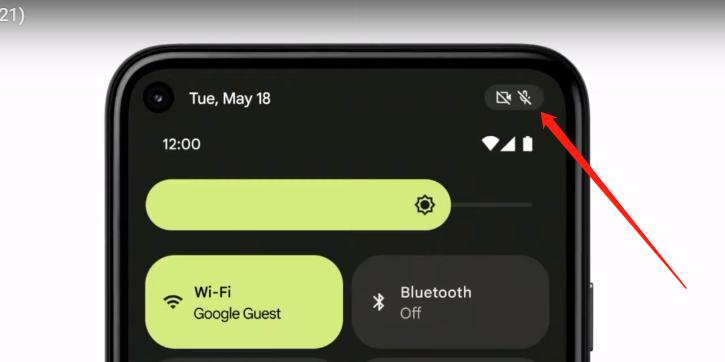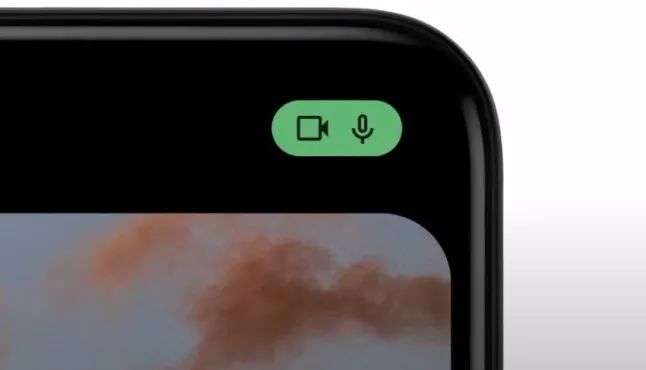 以及,现在有任何应用调用摄像头或麦克风权限,Android 12 也会在右上角有个提示了。同样的功能在 iPhone 上已经实现了很久,这次谷歌总算跟进了——不过,谷歌还多做了一步,可以让用户直接全局关闭摄像头和麦克风,同样会在右上角显示,如下图: