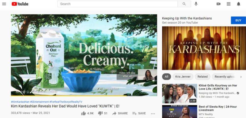 想要在YouTube上购买广告的营销者有一系列选择,包括在视频之前、之后或流中显示的可跳过或不可跳过的广告,视频发现广告(将用户引导到其他YouTube视频或频道)以及报头广告。