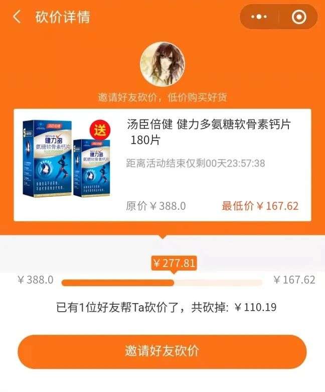 除了基于原有客户进行“推销员”裂变,华药天康也从私域流量端进行发力,如借助微信社群推出“助力砍价”“多人拼团”等裂变方式,提高品牌的曝光与商城销量。